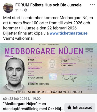 Vi på Folkets Hus Forum bjuder in till en Gratisföreställning för alla barn! Torsdag 23/10 kl.10:00.